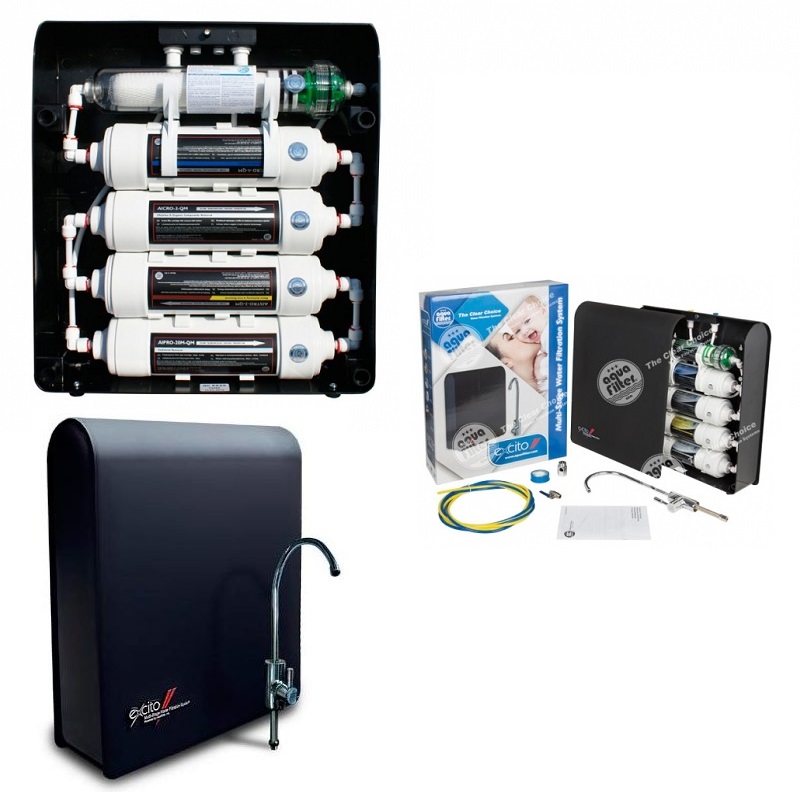 Purificator apa Excito B cu 7 trepte de filtrare incluse in 4 cartuse, la care se adauga o membrana de ultrafiltrare, pentru purificarea apei de baut si gatit provenita din reteaua municipala sau din sursa proprie.